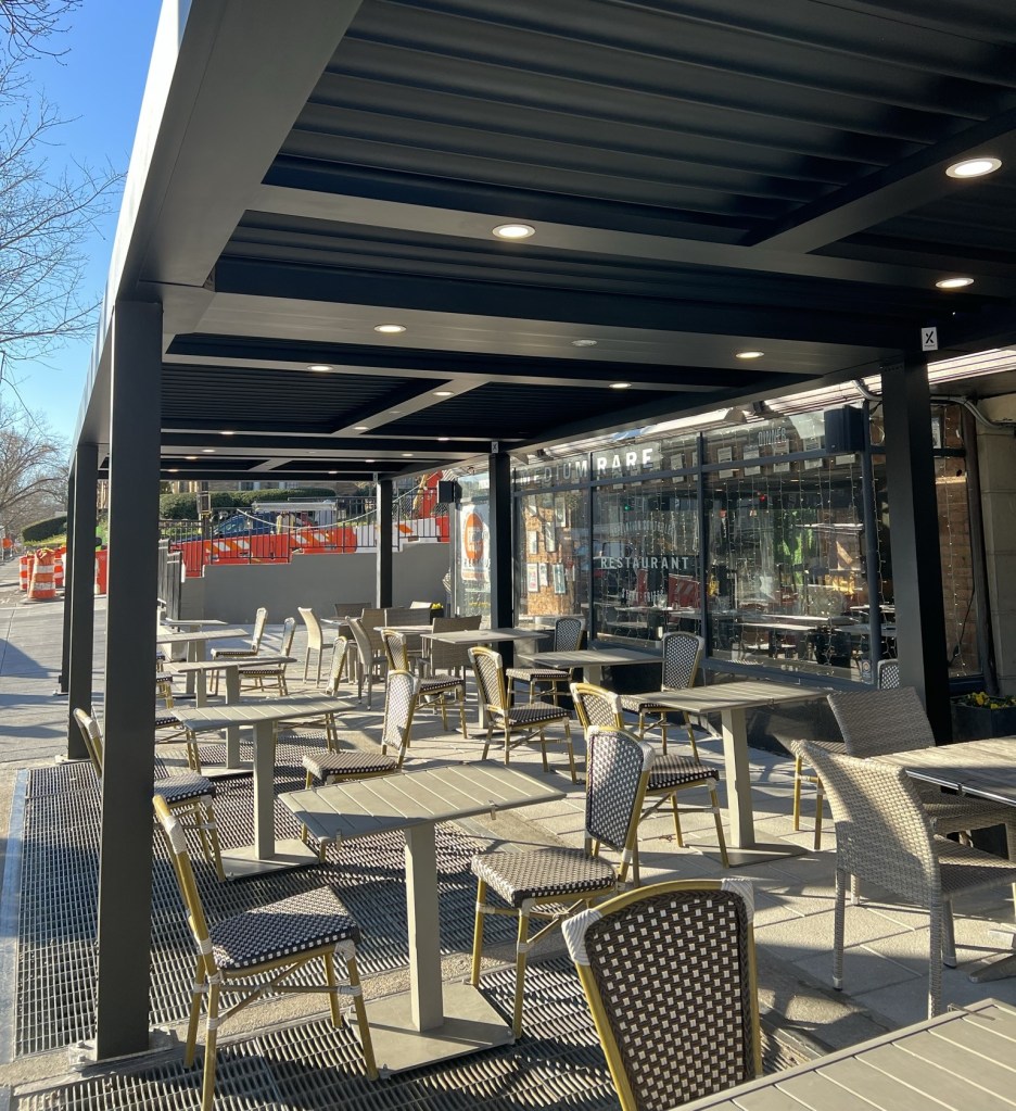 Thanks to your civic engagement and hard work by ANC Commissioners Sauleh Siddiqui and Tammy Gordon, Medium Rare won approval from the HPRB late last year to install a pergola over their outdoor seating along Connecticut Ave. And now the pergola is up! And IMO it looks great, hardly noticeable at a distance. Now go enjoy a meal!