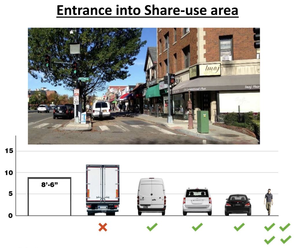 If cars return to the shared-use area, we hope a mechanism of retractable bollards can be used to block vehicle access at the entrance and exit while the area is being used for pedestrians and streateries.